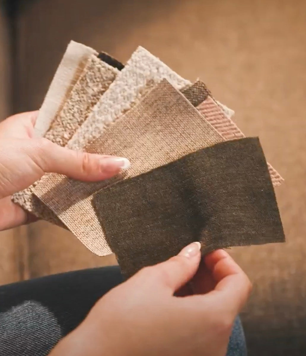 Test og føl kvaliteten af stoffet og bliv helt sikker på hvilken af nuancerne der spiller bedst sammen med resten af din stue.