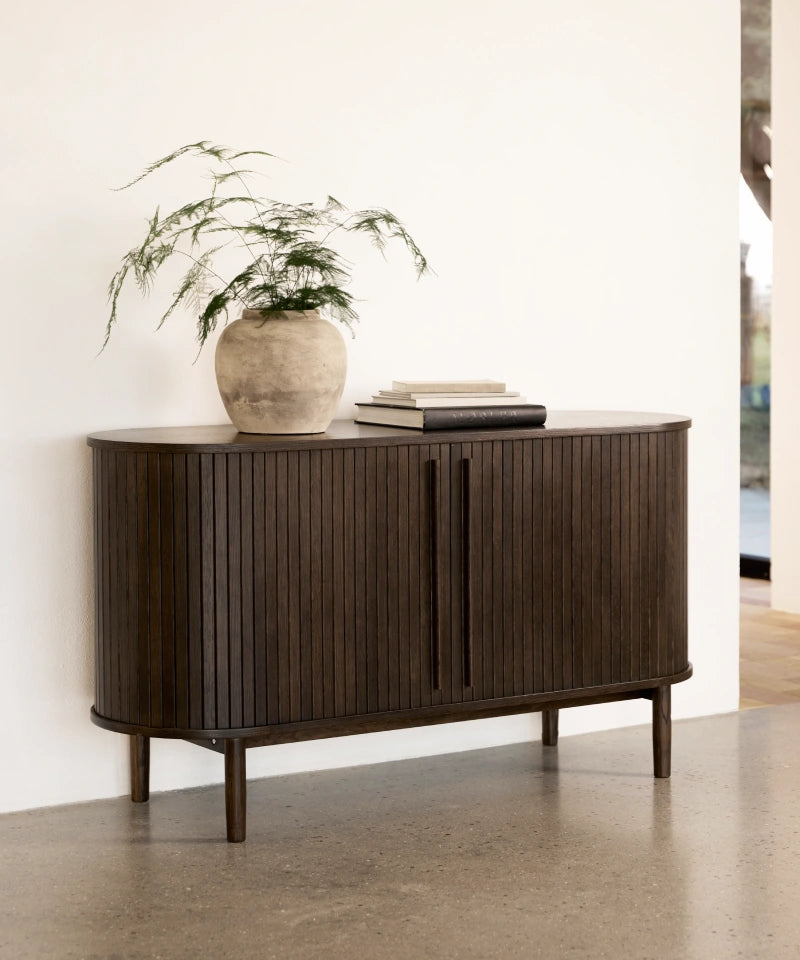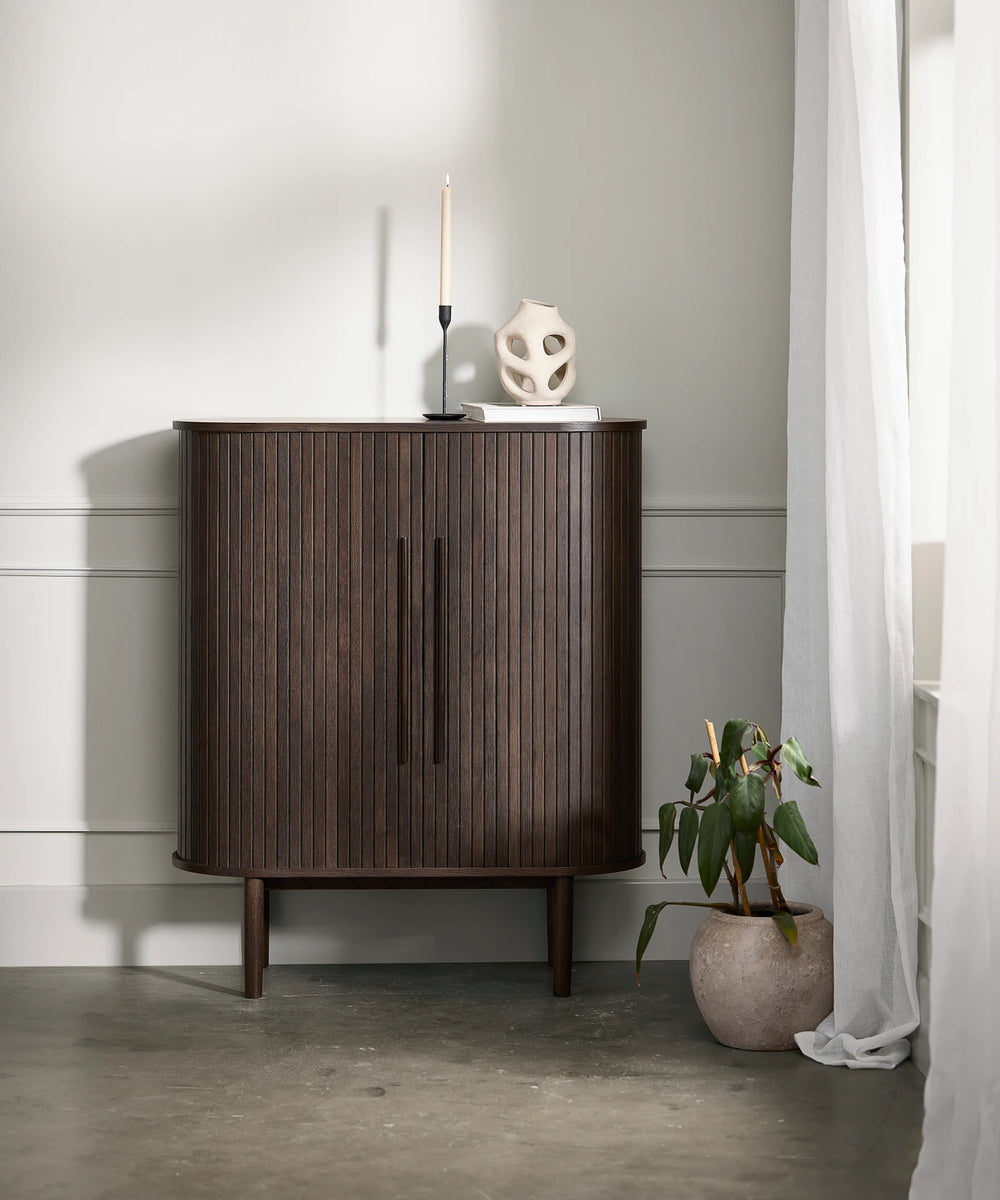Vi tilbyder alle vores opbevaringsmøbler i forskellige træfaver og træsorter som natur eg, brun eg og valnød samt sorte møbler.