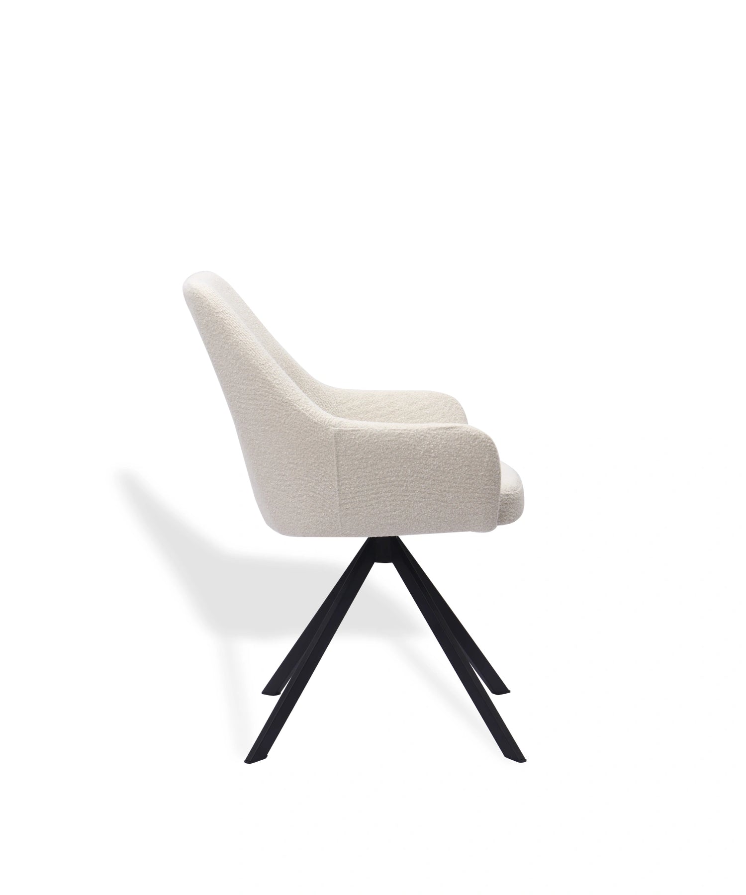 Ralf er en simpel spisebordsstol med lave armlæn og høj rygstøtte.