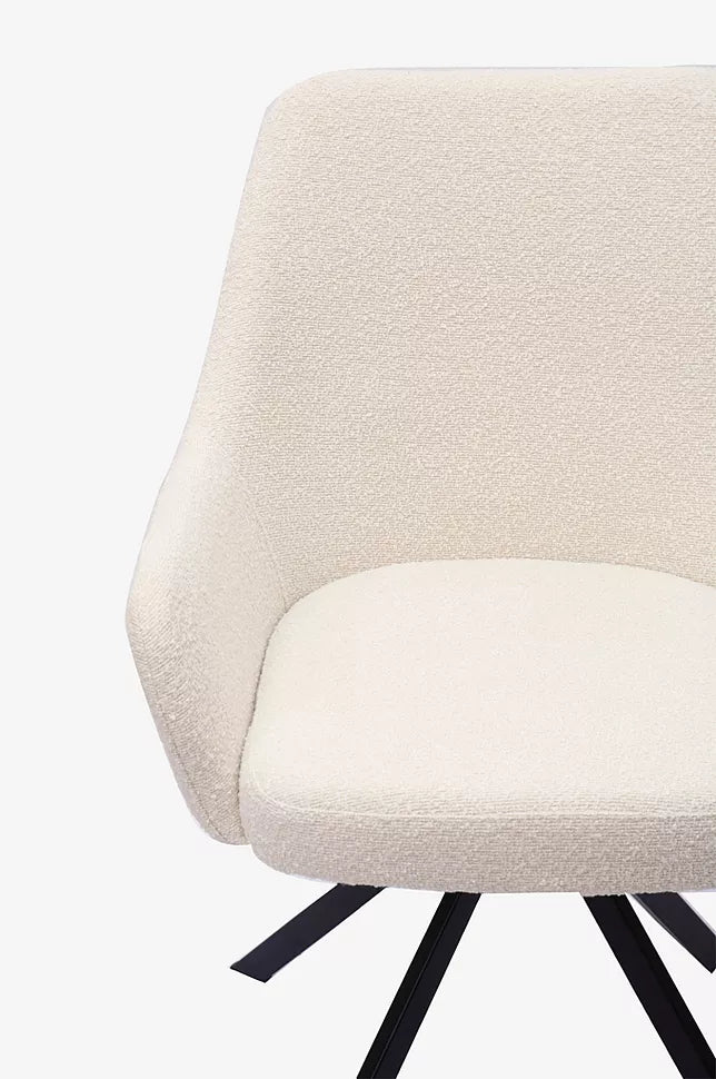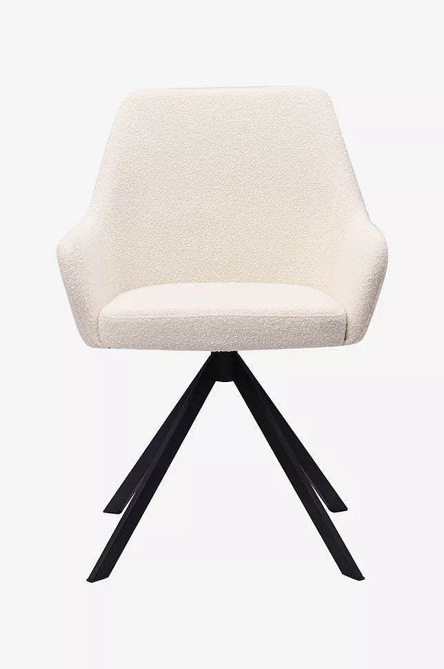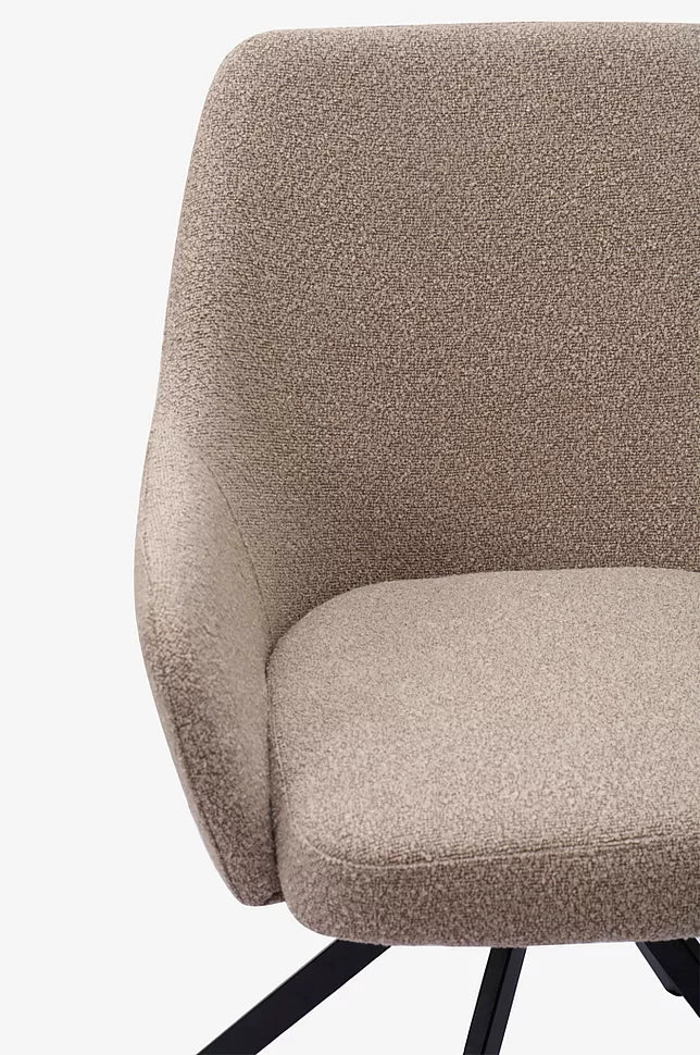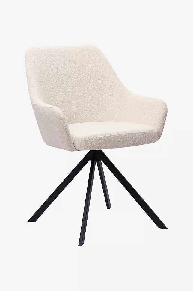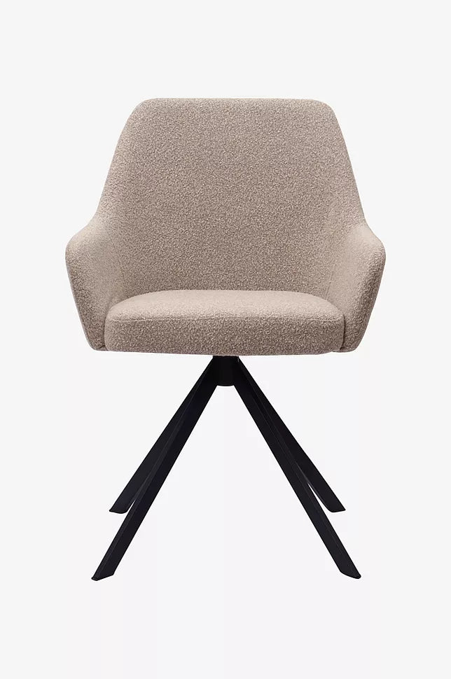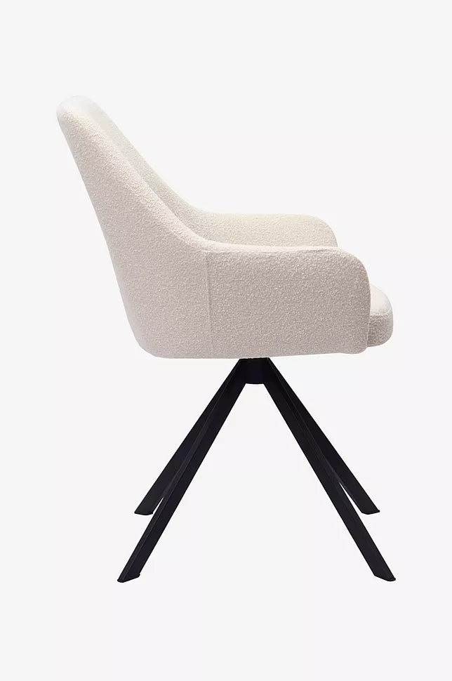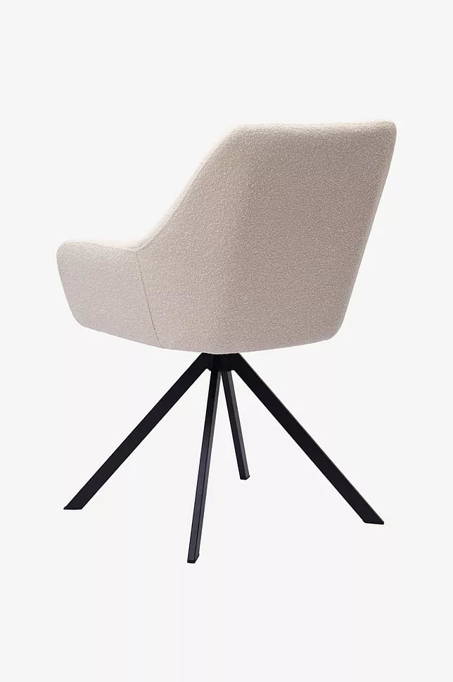 Ralf er en simpel spisebordsstol med lave armlæn og høj rygstøtte.