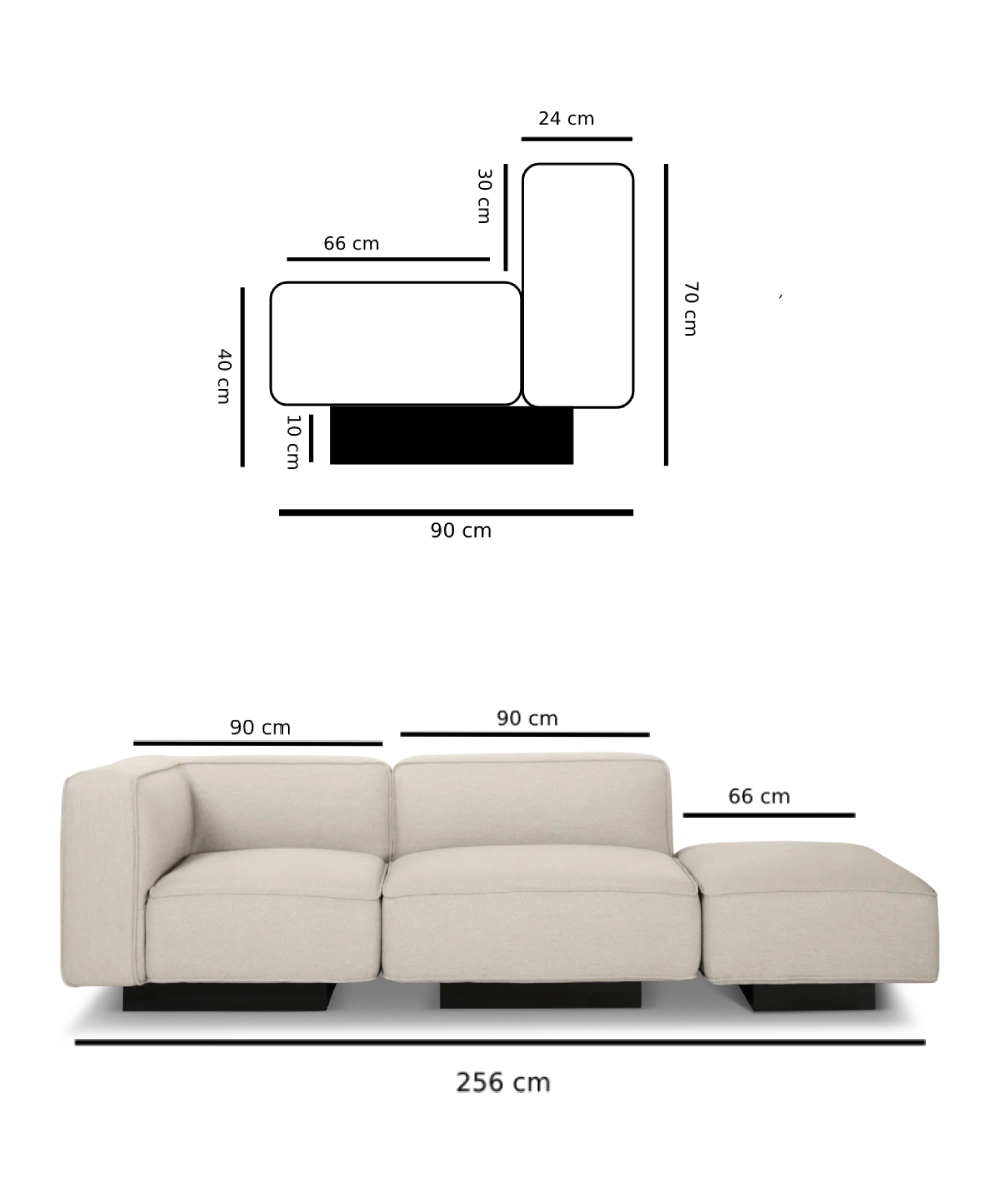• Puf/chaise måler: 66 x 90 x H42cm